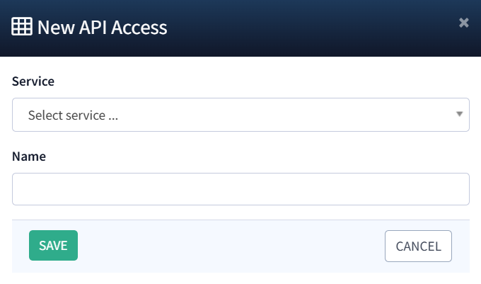To create an API Access record, click the New API Access button. In the pop-up window, fill in the following data fields: