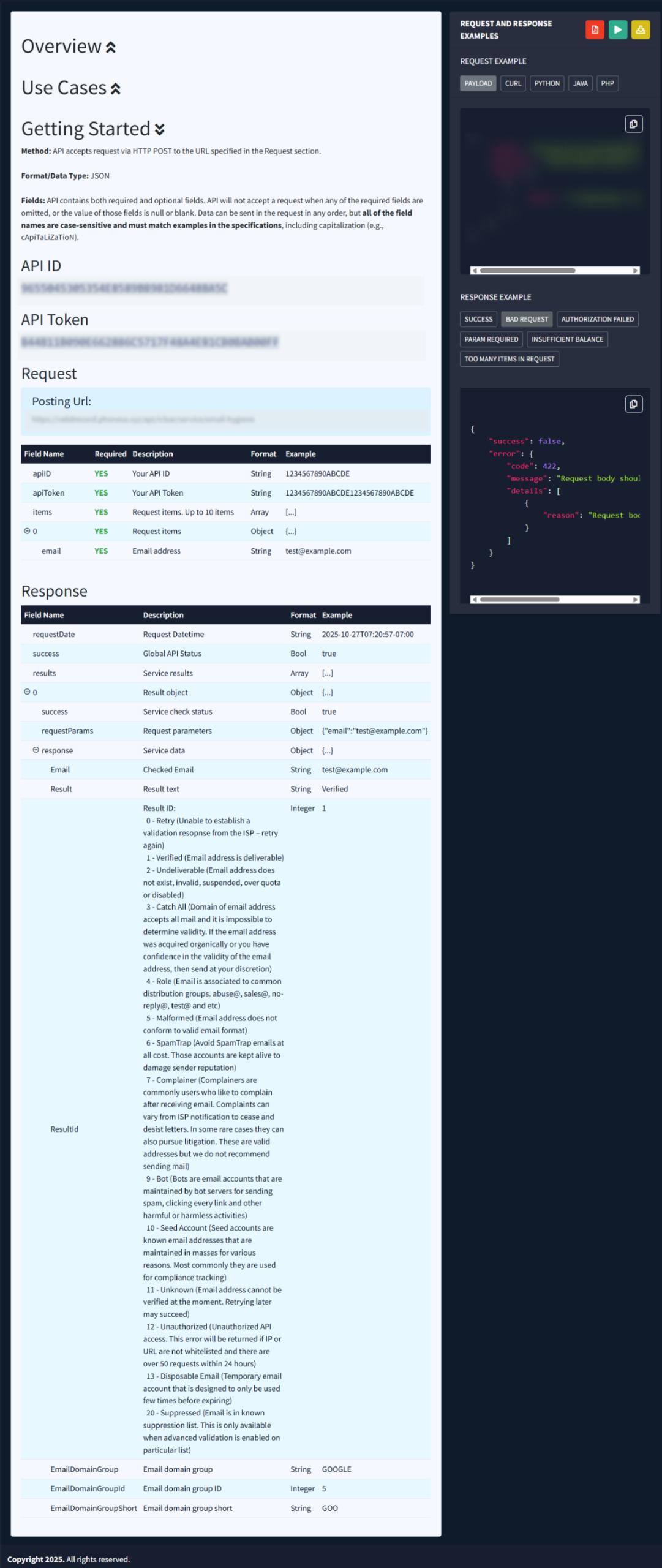 To get API documentation, click the Doc button in the Actions column, and you will be redirected to the API Documentation page.