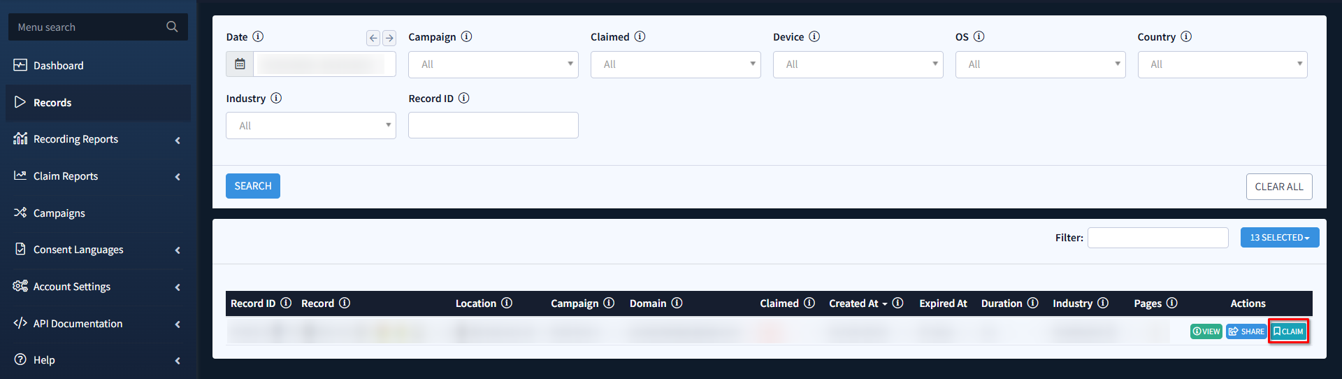 Once a record is claimed, you can easily access it at any time. Whether you’ve claimed the record manually, through the campaign’s auto-claim feature, or via the API, you can view the claimed record via the Records section or using the Record URL provided in the response.
