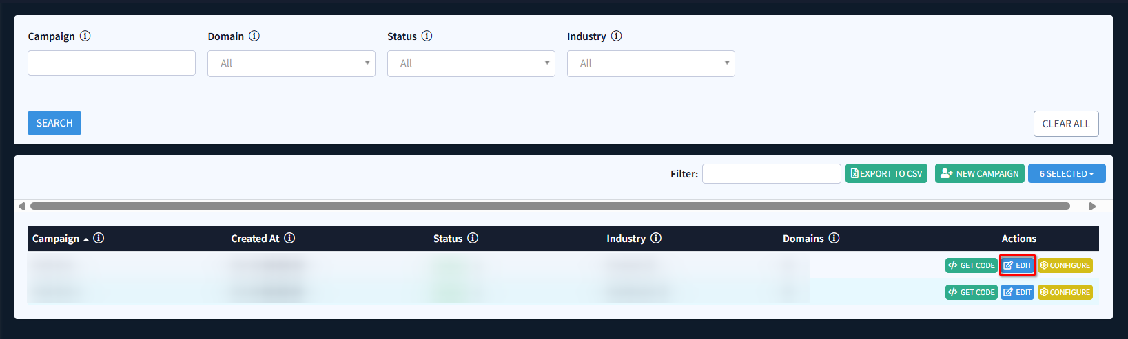 - Select the Campaign from the list and click the Edit button in the Actions column.