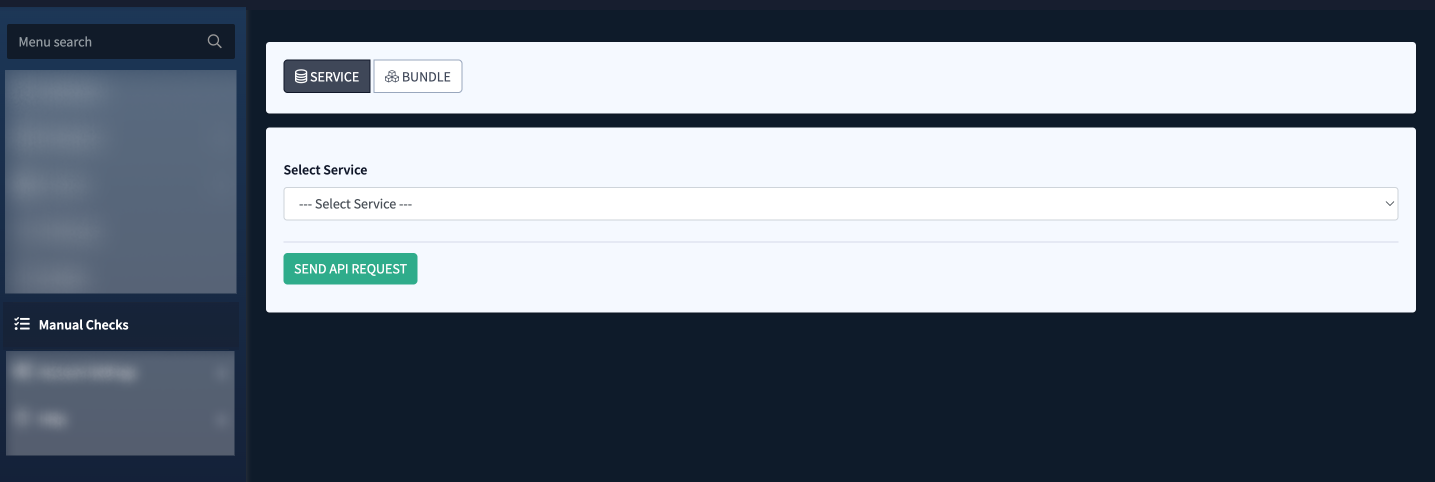 The Manual Checks section allows paid clients to send a manual request directly to the iClear API. This can be for a single iClear service or for a pre-selected combination of services (bundle). This feature provides a form to input required data and receive a complete response.