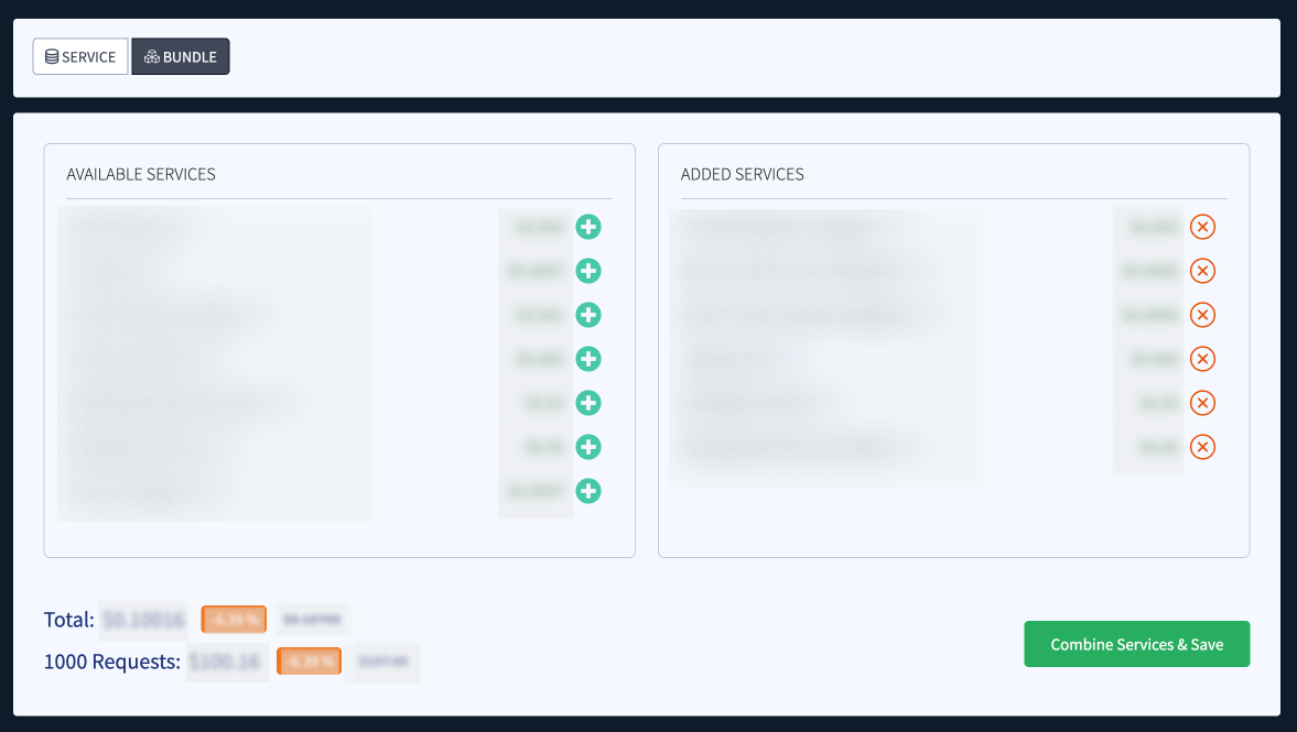 To generate the API request for the bundle of the selected services, click the “Combine Services and Save” button.