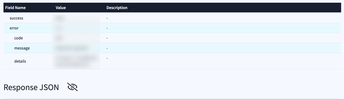 - Click the “Show Response” button (button with the crossed eye) in the “Response JSON” field.