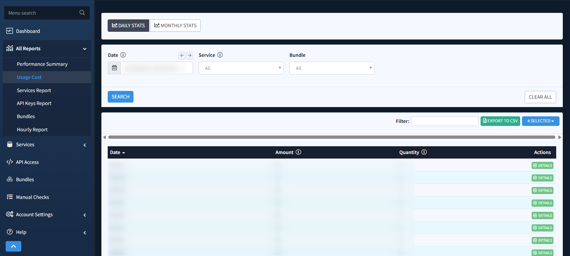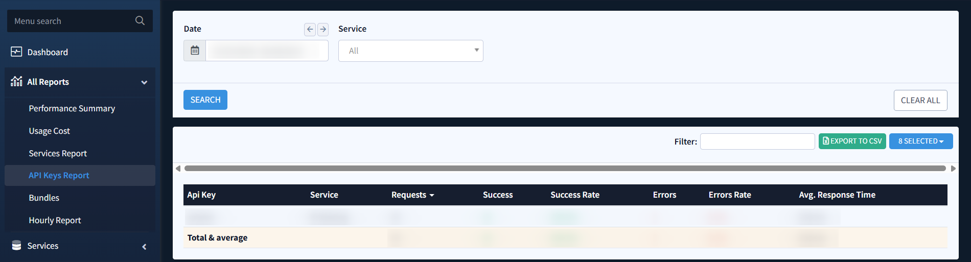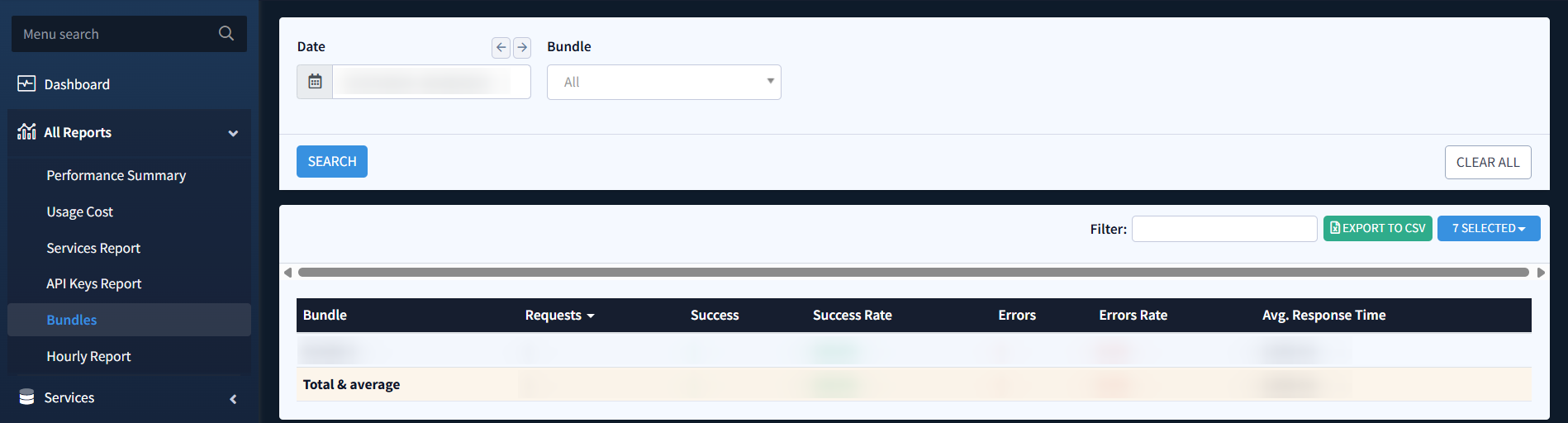 - Service/Bundle/API Key Filters: Narrow your view to specific elements.