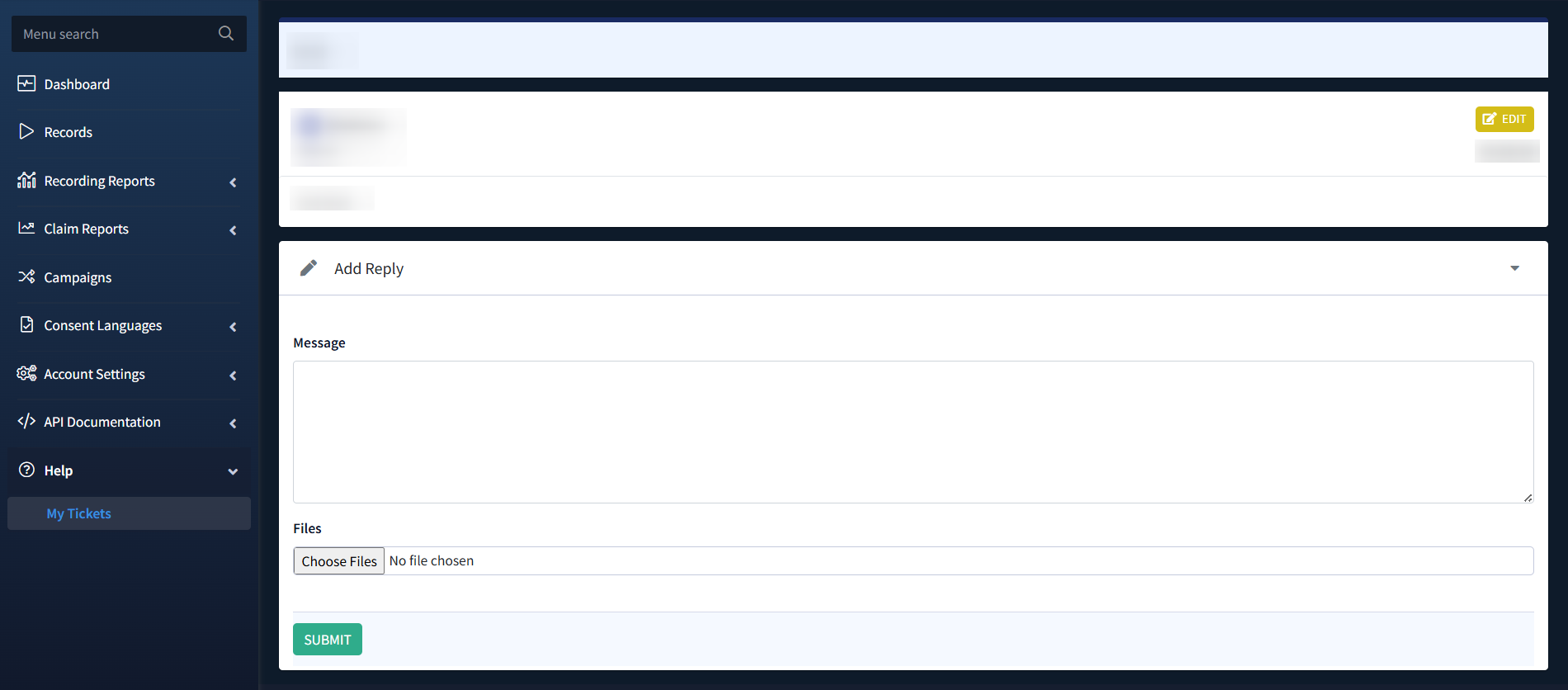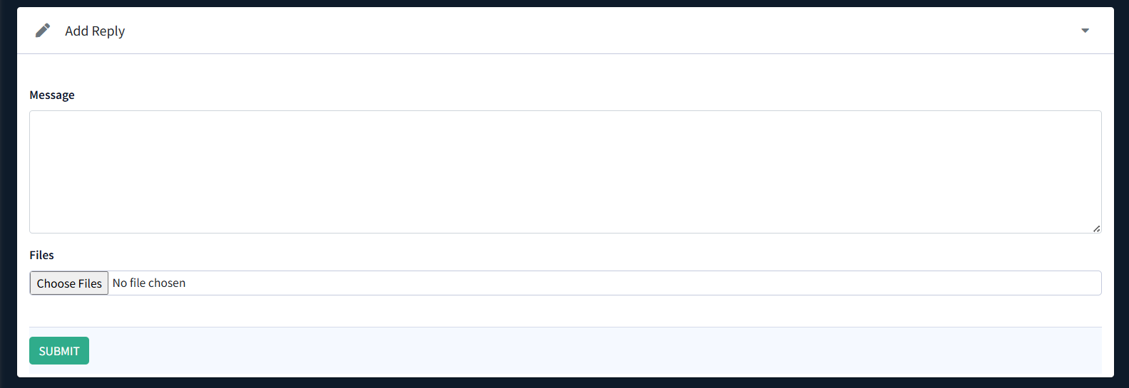 To send a reply on the existing ticket, select the Add Reply block, enter the reply message along with the file attachment if needed, and click the Submit button to complete the process.