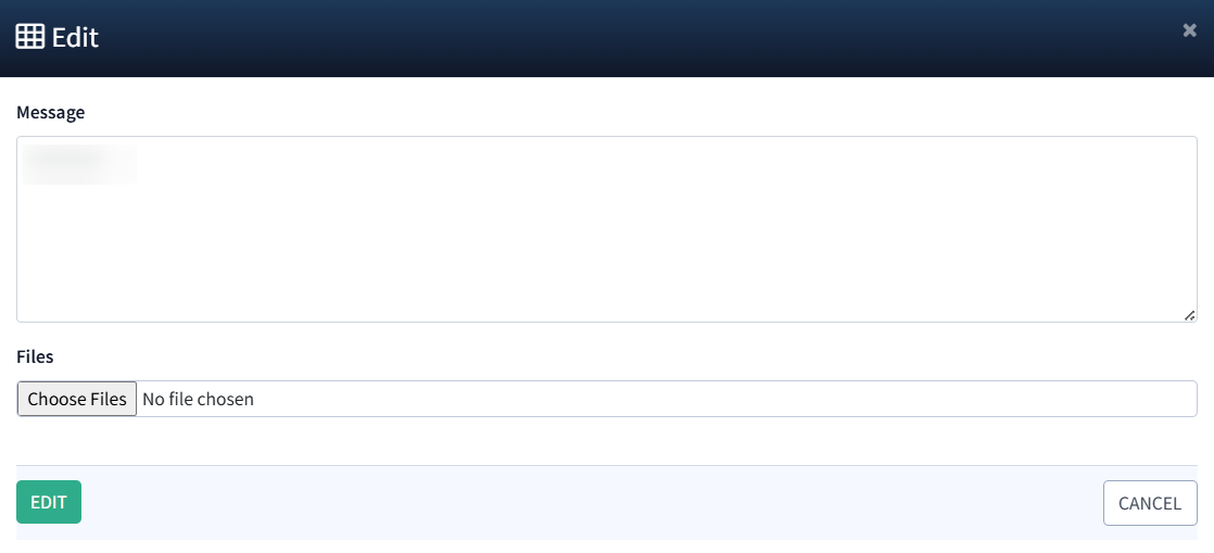 To edit the description and manage attachments of the message in the ticket, click the Edit button. Change the corresponding description and attachments in the Edit pop-up window and click the Edit button to complete the action.