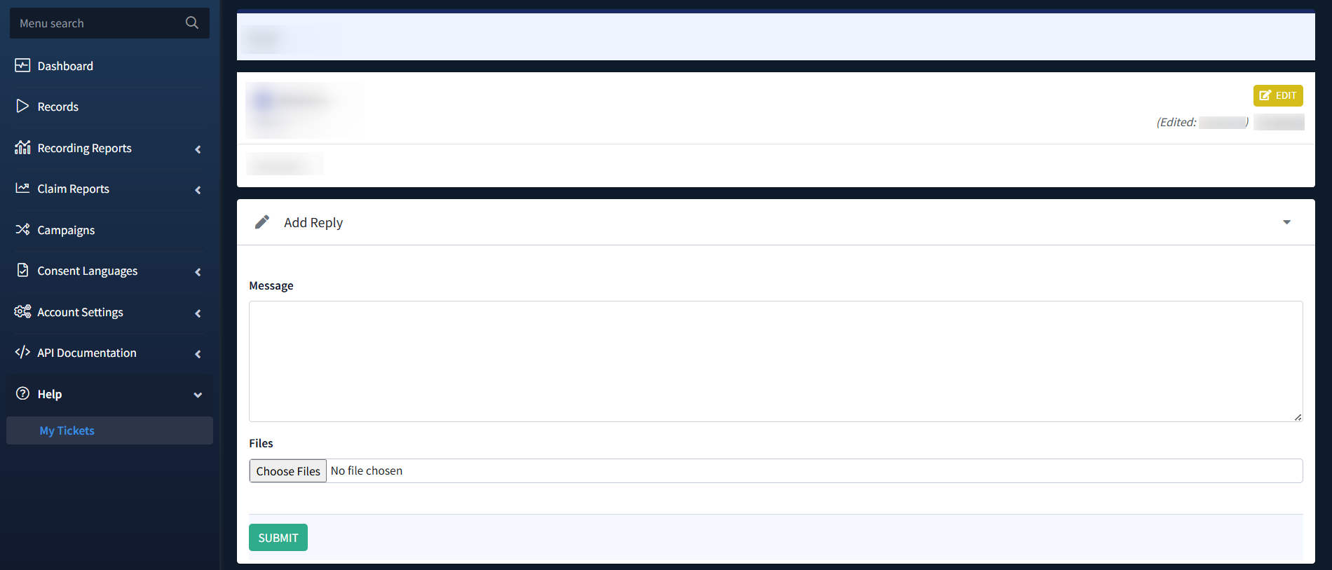 - Category: Select the category to which the ticket belongs (Other, Payments, Recordings, Account Configuration, API Documentation).