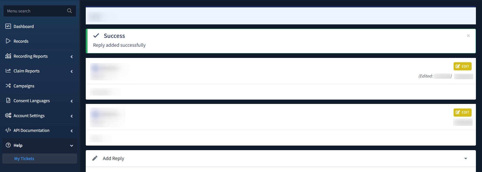 As soon as the reply submission is completed, the corresponding message will appear below in a thread.