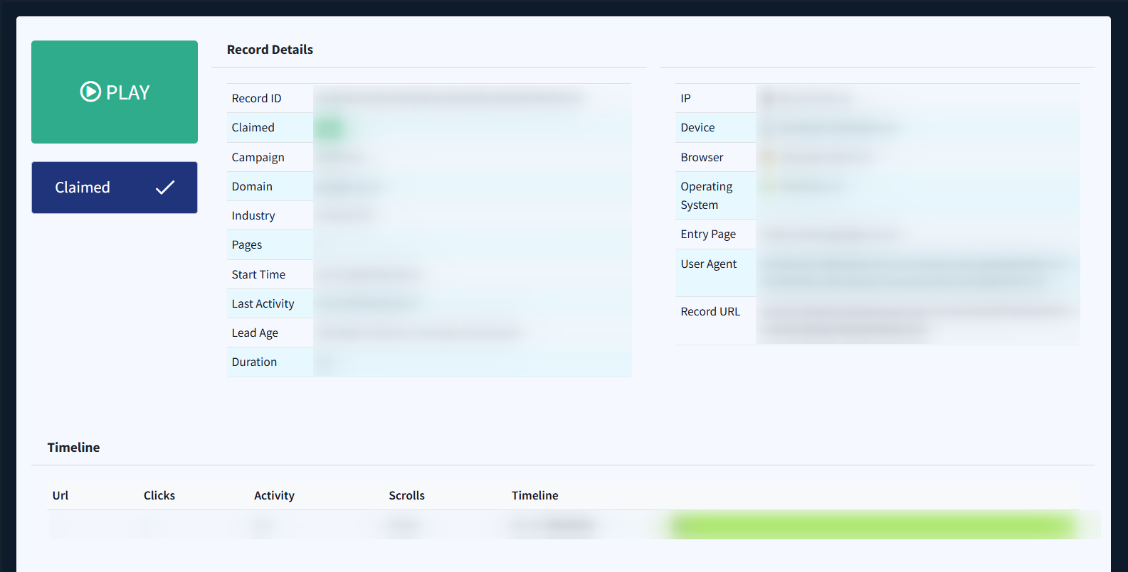 • Record: Digital proof of user interactions with a webpage or a form, including URLs, user activity, a snapshot, and documented consent – ensuring compliance with regulations like TCPA, GDPR, and CCPA while providing insights into lead origin and authenticity.